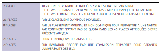 Jusqu’en 2016, les 55 places étaient uniquement attribuées via le classement olympique individuel.