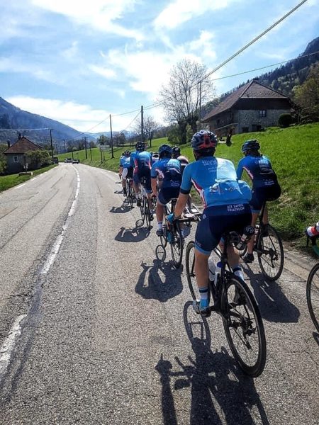 Comme nous l’avons dit auparavant, la grande majorité des triathlètes ne sont pas des acrobates sur un vélo. C’est facilement observable si vous assistez à un triathlon en tant que spectateur. De l’enfourchement du vélo à la ligne de transition en passant par les passages techniques, les triathlètes ont beaucoup à apprendre pour ne faire qu’un avec leur monture. Ainsi, rouler en groupe s’avère très intéressant pour travailler les compétences de pilotage. Rouler en groupe ne veut pas dire rouler en peloton de manière anarchique comme au Tour de France mais en petit groupe de niveau à deux de front. L’intérêt est de garder un minimum d’espace entre les athlètes que ce soit entre les roues arrière du triathlète ouvreur et la roue avant du triathlète suiveur mais aussi et surtout l’espacement entre les triathlètes sur une même ligne. À ce titre, il est possible d’intégrer des éducatifs ou jeux où l’on entre en contact avec son voisin, soit au niveau des coudes, soit au niveau des casques. Mais attention à ce que cela ne tourne pas au drame. Il ne faudrait pas qu’en prônant une amélioration des compétences, on y laisse une clavicule…