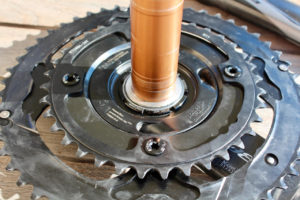 Notre modèle de test est la version carbone s’appuyant sur un K-Force light pour ses manivelles et son entraxe 4×110 BCD. Les longueurs de manivelles s’échelonnent de 170 à 175mm et la combinaison de plateaux est un classique 53×39. Cela dit plusieurs combinaisons sont possibles : 46×36, 50×34 ou encore 52×36.