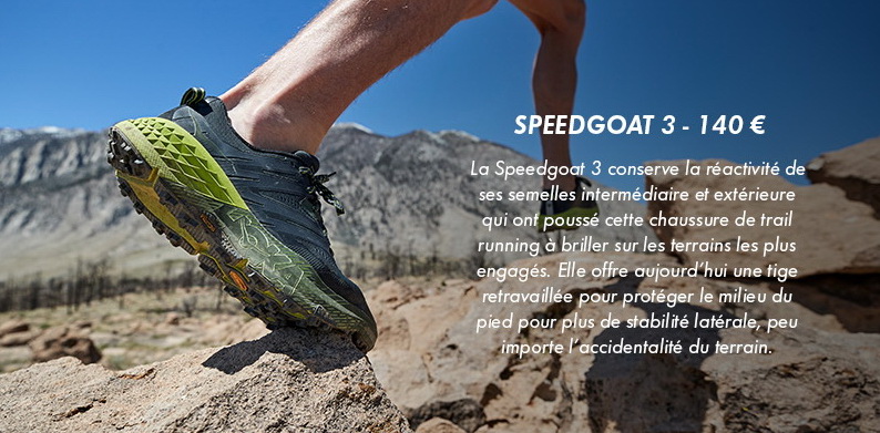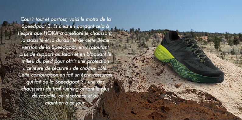 combinaison en fait un écrin rassurant qui fait de la Speedgoat 3 l’une des chaussures de trail running offrant le plus de rapidité, de résistance et de maintien à ce jour.