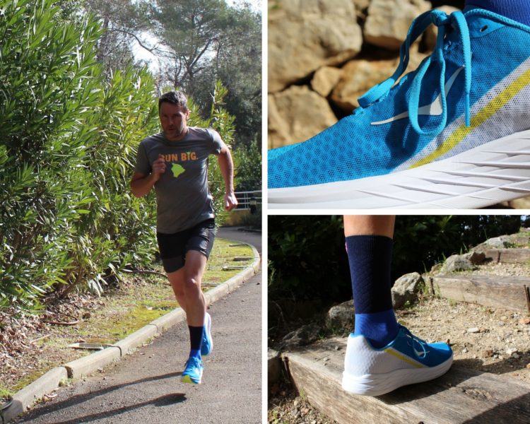 Et pour le coup, je me trouve assez bien placé pour aborder la question. Autant il me serait difficile de vous prouver par (A + B) que vous “casserez” les 30’ sur 10 kilomètres équipés d’une telle paire… Autant avec mes tendons en carton et mes mollets en coton, je suis le parfait cobaye pour tester un modèle à lame carbone sans pour autant avoir des objectifs d’ “élite”.