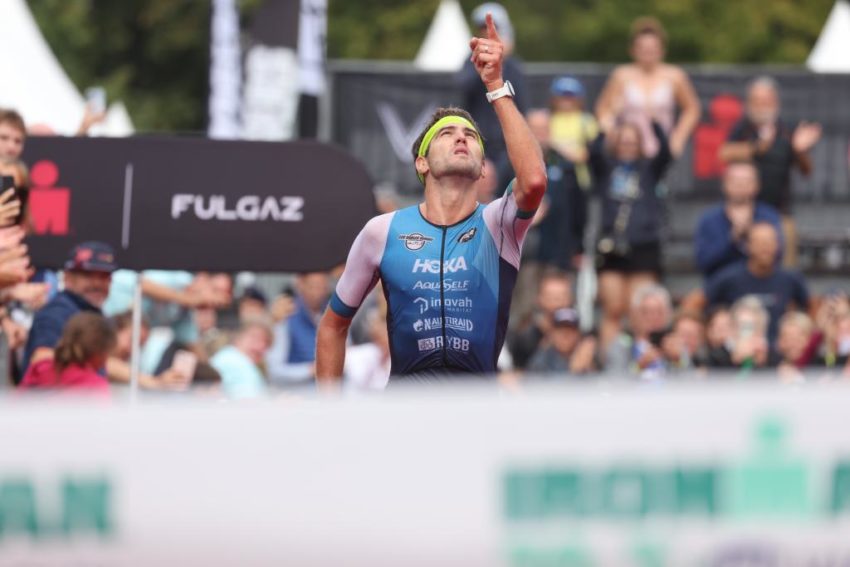 Partant toutes les 15 secondes à vélo depuis le « parc à vélo », les athlètes devaient gérer la stratégie de course et l’effort, tout en calculant en même temps dans leur tête leur temps de course. Les écarts sont rarement aussi serrés sur une course IRONMAN 70.3, mais ce que nous avons vécu aujourd’hui à Vichy a été unique. Du côté des hommes, Arnaud Guilloux n’aura réussi à creuser que 30 secondes sur Léon Chevalier après 3h23 de course.