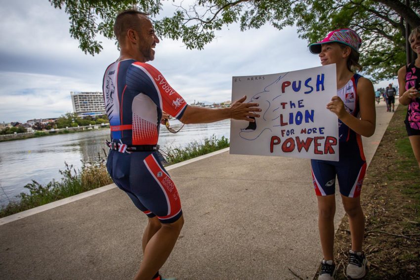 Vichy, France. (20 août 2022) –Les athlètes professionnels se sont élancés à 7h05 (Hommes) et 7h15 (Femmes) ce matin directement à vélo. Les athlètes ont longé les bords du Lac d’Allier avant de se lancer vers la campagne bourbonnaise sur un parcours de 90km. Les triathlètes ont ensuite fini avec une course à pied de 21.1km qui s’est achevée dans l’arène installée dans le Centre Omnisports Pierre Coulon. Des milliers de spectateurs se sont concentrés sur les bords du parcours, Cusset et l’arène autour de la finish line pour soutenir les triathlètes.