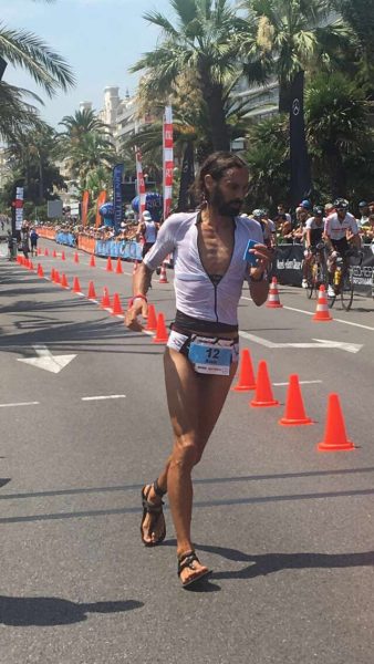 Alain Djouad Gibert termine en 10h40 avec un vélo recyclé, des dattes pour seul ravitaillement et il a couru le marathon en sandales.