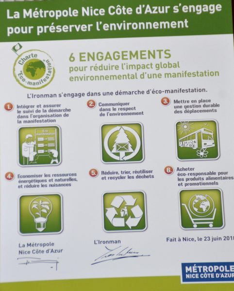 A noter la signature entre Ironman France et la Métropole Cote d’Azur d’une Charte Eco-manifestation :