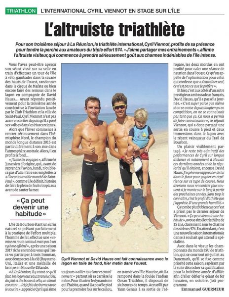 Après un abandon difficile à encaisser à Kona, Cyril a profité des vacances en famille sur l’archipel hawaïen, pour ensuite terminer sa saison sur le Triathlon de l’Océan Indien avec une victoire à la clé ! Actuellement en stage à la Réunion où il a partagé des séances avec les triathlètes locaux et David Hauss.