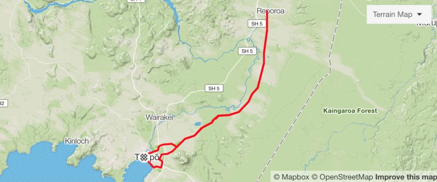 Le lac Taupo reste assez froid toute l’année. La température du lac est généralement autour de 19°C,il peut également faire frais sur le vélo.