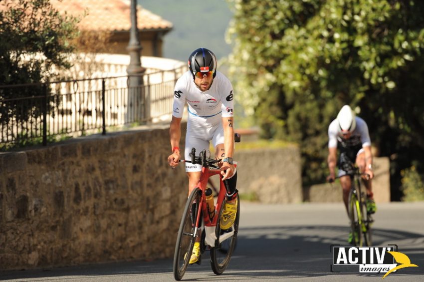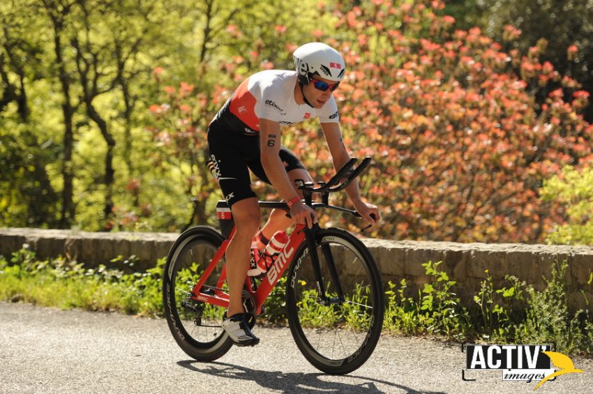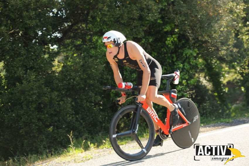 Robin Pasteur était, comme à son habitude, le plus rapide sur les 2 km de natation mais il était suivi de très près par Dorian Coninx et Léo Bergère. Si Sebastian Kienle sortait avec près de 3 minutes de retard sur la tête, il enclenchait rapidement la machine sur la partie vélo. Nouveau parcours pour cette édition et nouvelles difficultés ! Un parcours de toute beauté mais loin d’être de tout repos avec une montée du Tanneron qui permettait de creuser les écarts.