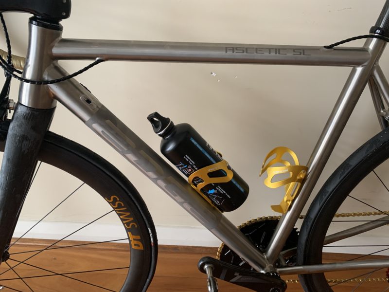 Lorsque le Booster n’est pas en service en tant que réservoir à air tubeless, il se transforme en bouteille d’eau, avec le bouchon en plastique. Le petit bémol de sa pluri-fonctionnalité en tant que bidon de ravitaillement concerne son diamètre, relativement plus grand que de nombreux portes-bidons en métal. Cependant, avec des portes-bidons “bon marché” en plastique ou plus onéreux en carbone, l’emboîtement n’a pas posé de soucis particulier. Il permet même d’avoir une assise sécurité dans le porte-bidon.