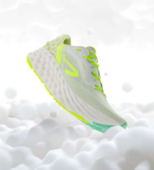 Et ce que l’on voit à l’extérieur est exactement ce qu’il se passe à l’intérieur. Cette texture inspirée du matelas a été travaillée de la semelle à la tige, pour envelopper le pied comme un chausson. La tige a été travaillée en élasticité, avec une empeigne stretch, pour s’adapter parfaitement au pied, avec un aspect plus rigide sur les côtés pour venir “wraper” le pied.