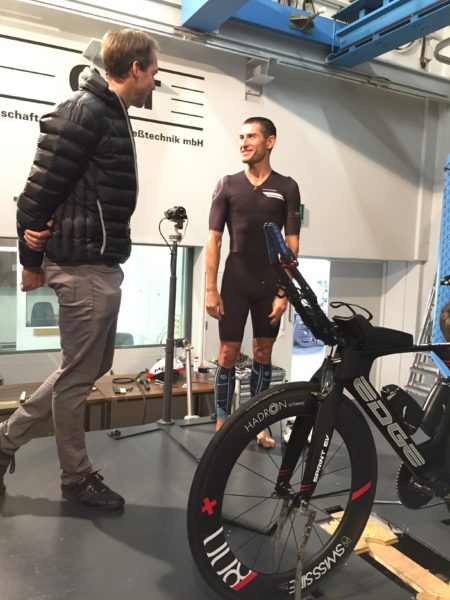 Jean-Paul Ballard, pour ceux qui ne le connaissent pas encore, est le patron de Swiss Side. Il a étudié l’ingénierie aéronautique. Il a aussi travaillé 14 années dans le monde de la Formule 1 chez BAR, Toyota et BMW Sauber où il était le chef de l’équipe des ingénieurs. Son travail l’amène à collaborer avec des fabricants de matériel (comme DT Swiss ou Cube par exemple), des équipes cyclistes professionnelles comme Ineos et des triathlètes internationaux comme Patrick Lange, le champion du monde ironman. Patrick est le 1er athlète à avoir cassé la barre symbolique des 8h lors des championnats du monde IM à Hawaii. Avant sa collaboration avec Swiss Side, il était à 101 secondes des 8h. Il a pulvérisé le record en 7h52. Cela vous donne une idée du potentiel que l’aéro apporte à une performance globale. D’après moi, Jean-Paul Ballard est Le personnage clé dans l’aérodynamisme en cyclisme et spécialement en triathlon qu’il pratique également.