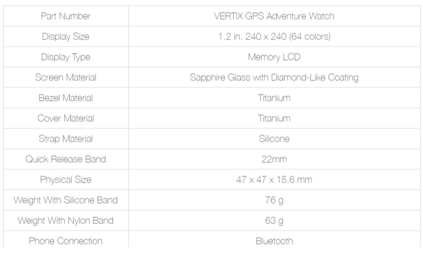 Pour le reste et sans surprise, la Vertix propose un niveau de fonctionnalités plus ou moins conforme à la concurrence (altimètre barométrique, capteur de fréquence cardiaque poignet, oxymètre de pouls, différents modes sport, intervalles… )