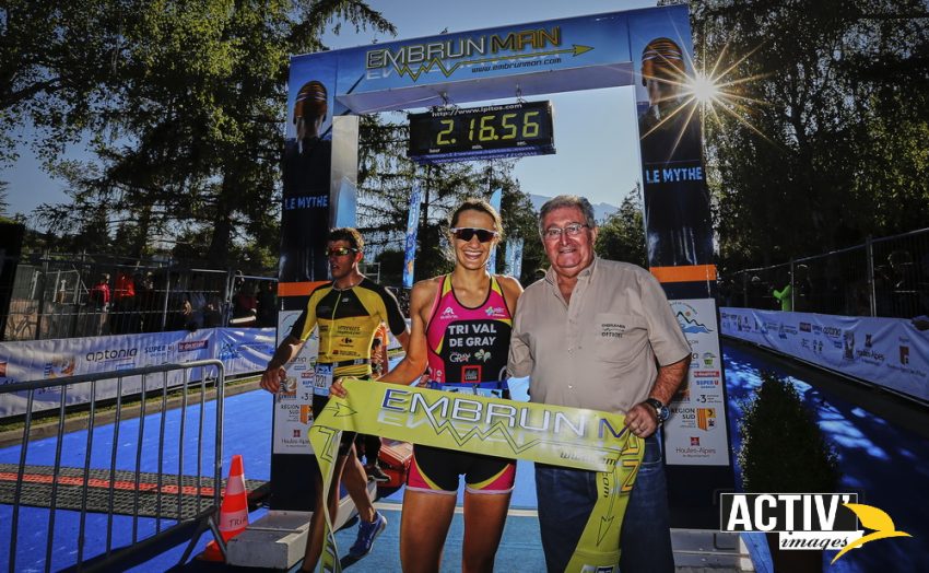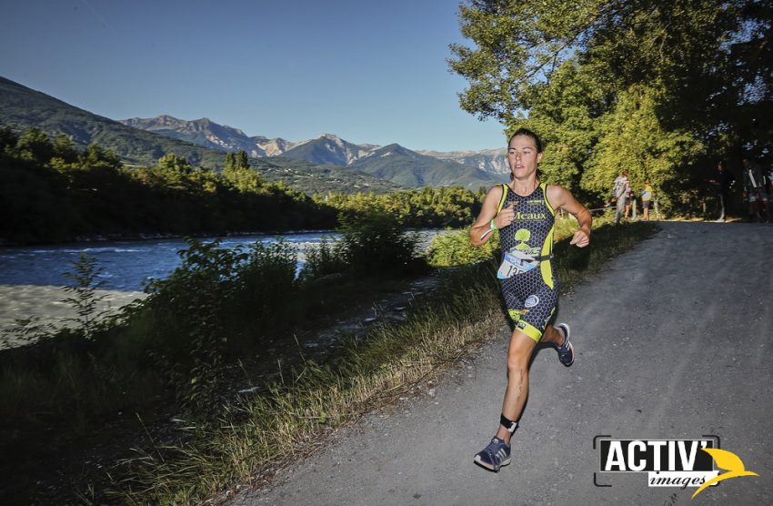 Mathilde maintenait la pression sur la partie cycliste. Julie Iemmolo se montrait également très puissante à vélo dans la première partie qui constituait la difficulté de ces 44 km vélo : la montée vers Saint Apollinaire. Mathilde basculait en tête tandis que ses rivales du jour n’étaient pas en mesure de l’inquiéter. 4’20… une belle avance pour la pensionnaire du Tri Val de Gray qui n’avait plus qu’à dérouler son effort pour remporter sa 2e couronne à Embrun sur le distance M. Une très belle saison pour Mathilde qui multiplie les performances.