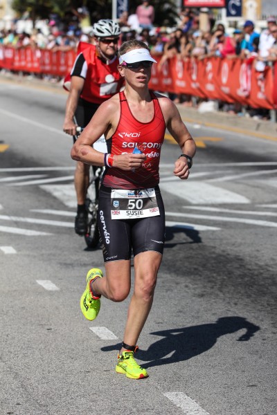 Jodie Swallow (GBR) a pris l’initiative en début de course avec une solide course attendue dans l’eau agitée. Annabel Luxford (AUS) suit à 4’ après la natation, et Dede Griesbauer (GER) est en troisième position.