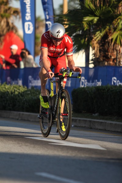 Albert roule fort et augmente son avance à 2’ sur Bas Diederen (NED) et l’américain Benjamin Collins sur les 45 premiers kilomètres. Un avantage certain après la natation sur quelques favoris qu’il fallait fructifier, comme James Cunnama (51:54), Matt Trautmann (54:17), Hoffman (52:58), Boris Stein (54:23) et Ronnie Schildknecht (55:10).