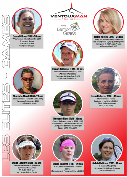 Si ce quatuor semble se détacher, il faudra aussi compter avec quelques outsiders : Isabelle Ferrer (Tri Val de Gray) trois fois 2e à Embrun, Céline Bousrez (triathlon du Pays Grassois), championne de France duathlon LD en titre, Morgane Riou (Versailles Triathlon), double championne de France XTerra, ainsi que Maïté Lecouty (Echirolles), vainqueur de la première édition du VentouxMan en 2015, ou encore Gabriela Brien (Ose 3 Sports Maxime).