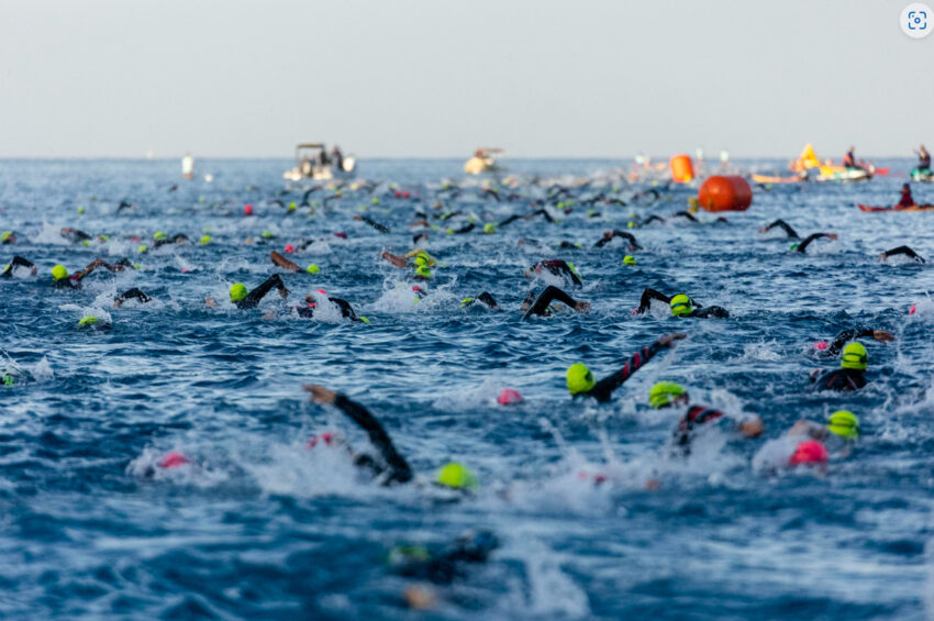 de la Méditerranée. Les athlètes entreront dans l’eau à partir de la plage de galets des