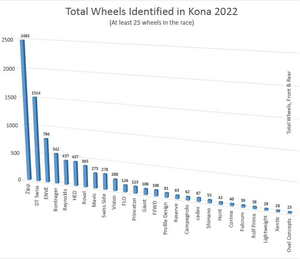 Pour la petite anecdote, la marque leader à Kona en 2022 était, une fois n’est pas coutume, Zipp avec 2485 paires de roues comptées sur les 2 jours de championnats du monde. Vient en seconde place, la marque helvétique DT Swiss avec 1514 paires de roues. Si on y ajoute les 278 paires de Swiss Side, on atteint presque 1800 paires.
