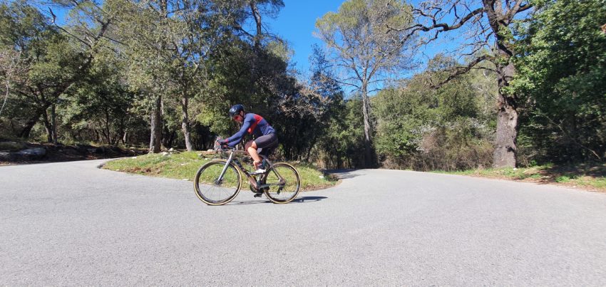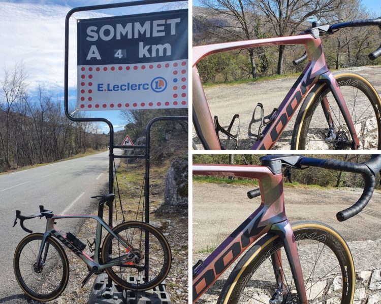 Bien que placé dans la catégorie “vélo route aéro”, le 795 Blade RS est très efficace dans les ascensions. Avec ses 7.3kg sur la balance, il n’est pas le plus léger des vélos mais il sera difficile de lui en tenir rigueur. Ses qualités dynamiques prennent le dessus et en font un compromis idéal pour qui ne veut pas investir dans un vélo chrono et veut être performant sur Triathlon CD à Half vallonné. Petit bémol cependant sur le cintre qui de par sa forme ne permet pas le montage facile d’un prolongateur. Dommage. À l’inverse, mention spéciale pour le choix des roues Corima WS BLACK DX ! Avec une telle paire de roues, on ne peut que souhaiter un retour au sommet pour une marque comme Corima.
