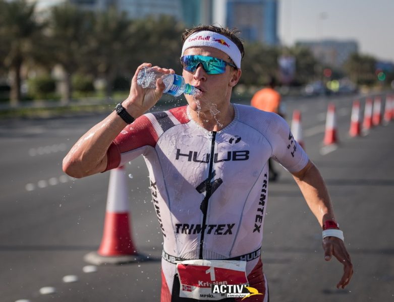 On vous rappelle que dans le processus de production d’énergie, l’oxydation de l’énergie produit de la chaleur et que cette dernière augmente la température corporelle. Cela est délétère à partir d’un certain niveau et le corps thermorégule pour évacuer cet excès de chaleur par notamment la sudation. Comme on le sait, le triathlon est un sport estival et il est rare de courir un marathon d’Ironman sous ces conditions météo épouvantables. Par ailleurs, on démarre le marathon d’un Ironman avec déjà presque 4 km de natation et 180 km de vélo dans les cannes. Autant dire que la température corporelle n’est pas optimale ou contrôlée, comme cela pourrait être le cas sur un marathon sec.