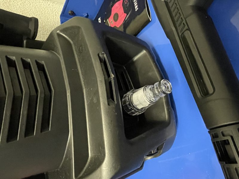 Côté accessoires, il y a la lance avec laquelle des extensions sont incluses : une extension spécifique pour nettoyer les vélos, une extension spécifique pour les motos (dont la pression est significativement supérieure) ainsi qu’une dernière extension dont la pression peut être modulable afin notamment de l’utiliser sur des parties sans risque et où de la saleté tenace s’est déposée.