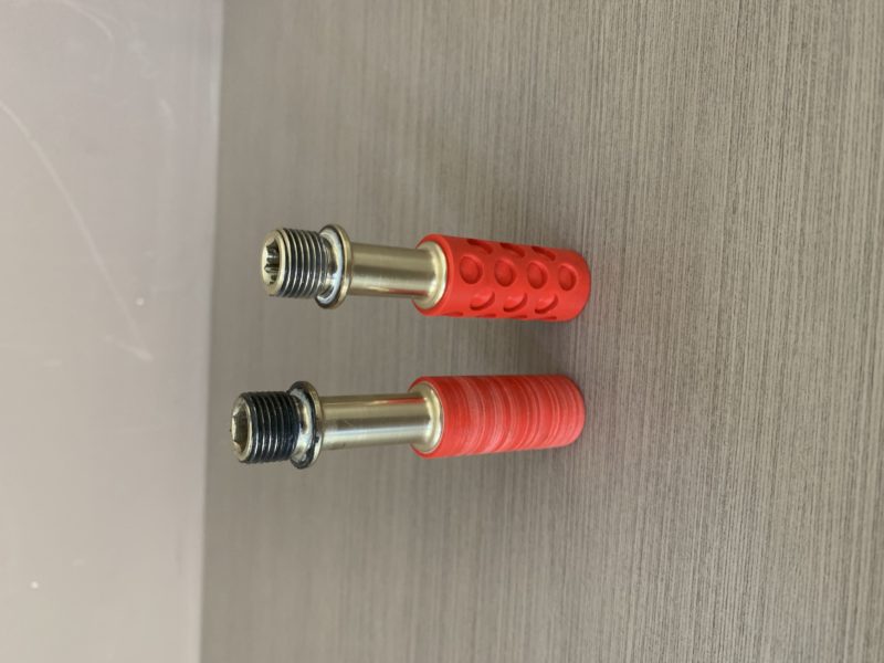 Certaines marques, comme Speedplay, se vantent d’avoir des pièces de rechange qui permettent de donner un second souffle à leurs produits. C’est une bonne chose en soi, que ce soit pour l’environnement ou pour le consommateur in fine car il n’a pas à racheter l’intégralité d’une paire de pédales, quand une partie des pédales est soit abimée ou détruite. Avec Aerolite, pas besoin de reconstruction ! Vous pouvez voir tout ce dont ces pédales sont faites sur les photos jointes à cet article. Il y a un axe en titane solide et durable, un manchon en turcite rouge et un capuchon en alliage qui maintient la turcite en place. Il n’y a pas de roulements (le manchon en turcite lui-même est le roulement), pas de ressorts, pas de petites pièces à casser ou à remplacer, rien. “Nada” ! Et les cales sont tout aussi simples et durables. Aerolite affirme que les cales peuvent fonctionner de manière optimale entre 2 et 3 années en fonction de votre usage.