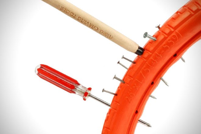 Avant que Dunlop n’invente le pneumatique en 1887, tous les vélos étaient équipés de pneus pleins et, mis à part le fait d’être inconfortables, personne n’avait jamais eu de crevaison avec. Depuis, l’industrie du vélo a lancé et assuré l’hégémonie du pneu. Et les cyclistes / triathlètes se sont habitués à emporter avec eux chambres à air de rechange, démonte-pneus et mini-pompe, nécessaires pour réparer une crevaison. Pourtant, il n’y a rien de plus désagréable que d’être sur le bord de la route en hiver à réparer une crevaison, pendant que les copains vous attendent, ou pire encore, avoir une crevaison durant une course !