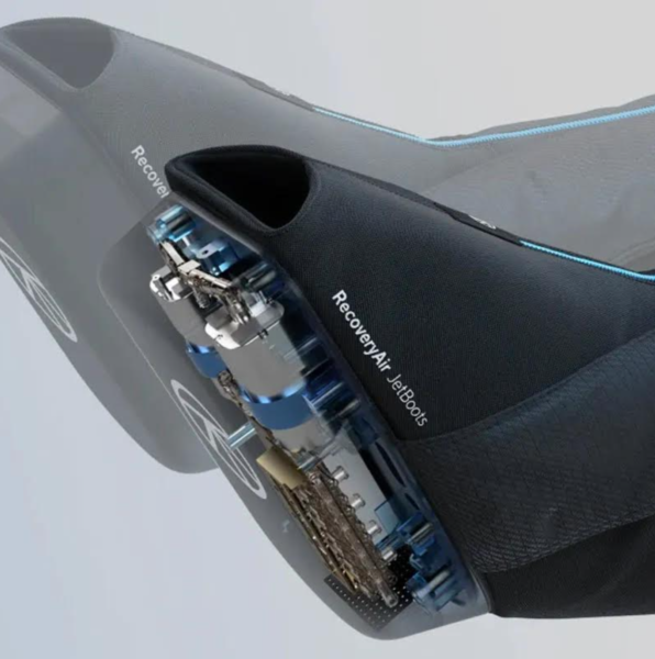 Il existe dans la famille RecoveryAir différents types de modèles : celui de notre test, les JetBoots, mais aussi les modèles PRO et PRIME. En termes de prix, les JetBoots se placent au milieu de la gamme à 899 €, contre 1 299 € pour le modèle PRO et 699 € pour le modèle PRIME. Pour faire simple, les 3 appareils utilisent la même technique de compression, la différence se faisant sur le niveau de personnalisation possible pour le modèle PRO et pour les Jetboots, avec la particularité d’être un système totalement sans fil. La PRIME offre plus ou moins les mêmes fonctionnalités que les Jetboots, le “sans-fil” (ou plutôt sans tuyaux) en moins.