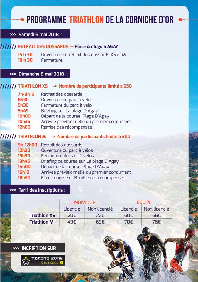 Après quelques années d’absence retour du triathlon de Saint-Raphaël, le triathlon de la Corniche d’Or qui aura lieu le 6 mai prochain au départ de la plage d’Agay avec un parcours vélo magnifique dans l’Estérel.
