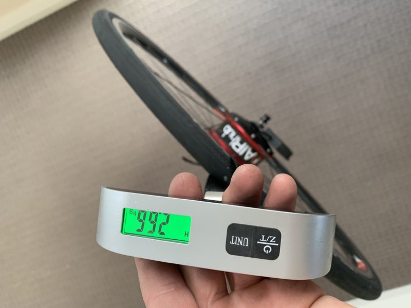 La jante utilisée dans la construction de la roue est issue du fournisseur Alex Rims, connu et reconnu pour ses produits bon marché mais aussi et surtout, durables et de confiance. La jante (25 mm de hauteur, 23,6 mm de largeur et 18,5 mm de largeur interne) est reliée au moyeu Airhub via 24 rayons Pillar. La roue avant pèse 2,26 kg sans attache-rapide. Avec un pneu Vittoria Rubino Pro et une chambre à air, on atteint les 2,66 kg. C’est un petit surplus déjà rien qu’en terme de poids. Sachez que le Airhub est également disponible avec une jante en carbone, ce qui permet d’éviter par exemple de changer les patins de frein entre roues à jante alu et jante carbone.