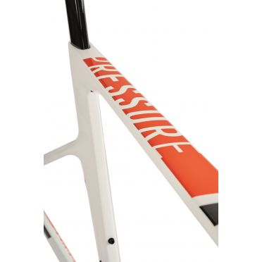 Annoncé à 990 grammes pour le cadre et 390 grammes pour la fourche, le Pressure est dans les standards des cadres à vocation aéro. Il est donc très facile de réaliser un montage autour des 7 kg avec la plupart des groupes du marché. Ici, notre test a été réalisé avec probablement ce qui se fait de mieux, à savoir un groupe Campagnolo Super Record (nous ferons un retour sur ce groupe dans un test à venir). Le Pressure est disponible en 5 tailles, du XS au XL et deux coloris : le « Rock the White » de notre vélo test et le « Team Limited ». Enfin pour être complet avant de passer à l’essai, le kit cadre est disponible au prix de 3 490 €.