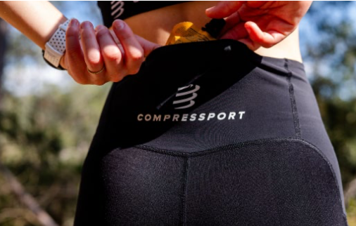 Intégrée discrètement à la ceinture, une poche arrière à large ouverture permet d’emporter téléphone, gels ou petits essentiels, avec un accès rapide et sécurisé en plein effort.