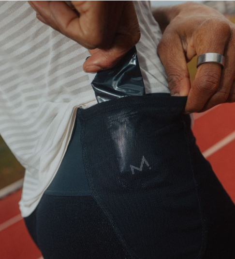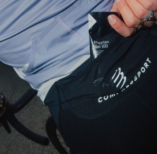 Une poche arrière en mesh, facilement accessible, permet de transporter gels et nutrition sans compromettre la respirabilité ni le maintien.