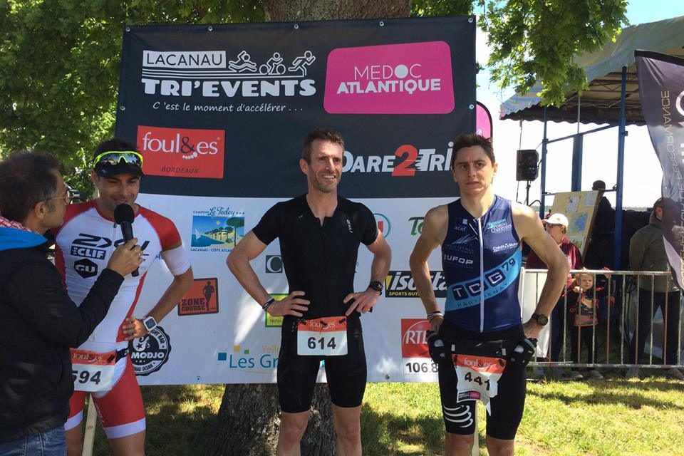 Top, victoire en 3h48’28’´. Une première sur cette distance en dehors de GA sur le circuit 70.3. Guillaume BELGY est revenu comme une fusée et termine deuxième à 35’´ et Sébastien FRAYSSE complète le podium à 1’38’´.