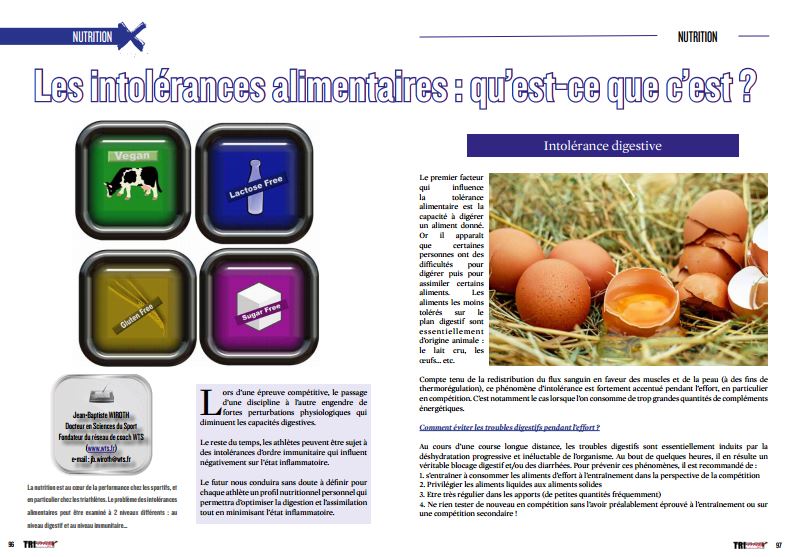TrimaX#163 vous en dit plus sur les intolérances alimentaires Posted by Alex-TrimaX | jeudi 25 mai 2017 | Actualités, News | 0 | La nutrition est au cœur de la performance chez les sportifs, et en particulier chez les triathlètes. Le problème des intolérances alimentaires peut être examiné à 2 niveaux différents : au niveau digestif et au niveau immunitaire…