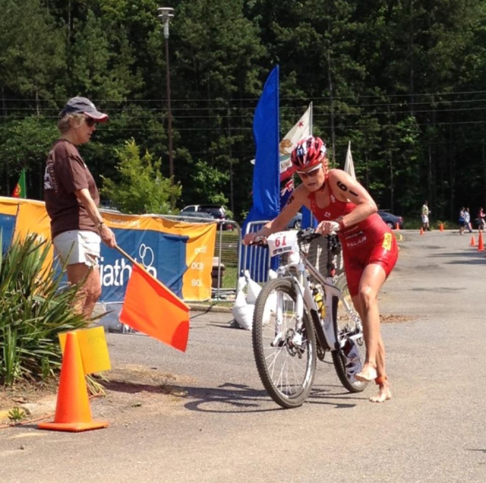 Kienle a rejoint le groupe de tête et attaque, il a des jambes de feu ! Il a besoin d’une avance confortable à T2 s’il veut s’imposer devant les très bon coureurs qui compose le groupe de chasse.