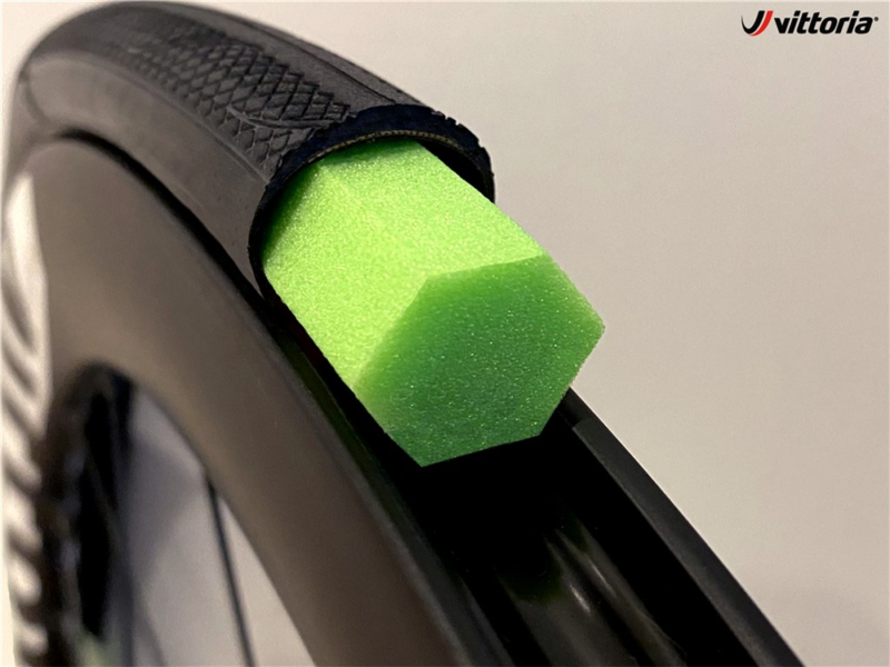 Les inserts de pneu en mousse sont très populaires dans le monde du VTT, pour la façon dont ils protègent contre les dommages aux jantes, évitent les crevaisons par pincement et permettent des pressions de gonflage plus faibles pour améliorer la traction et le confort de conduite. Ils font leur chemin dans le monde du gravel pour les mêmes raisons. Vittoria fabrique l’Air-Liner à partir de mousse EVA similaire à ce qui est couramment utilisé dans les chaussures de course à pied, qui, selon la société, n’absorbe pas le liquide anti-crevaison et est suffisamment durable pour effectuer 2 000 heures de vélo à pression normale (ou une heure si vous roulez complètement à plat…).