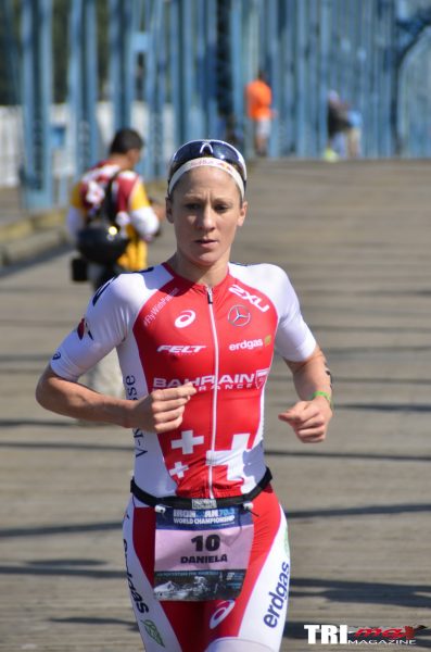 En 2016 elle n’avait terminé que 4ème, mais cette année malgré ses ennuis de dos elle avait la volonté de reprendre son titre tout en gardant un oeil sur Kona dans un mois. Sortie 6ème de l’eau à 1’10 de la première Lauren Brandon, la suissesse a construit sa victoire sur le parcours vélo en arrivant à T2 avec 8:42 d’avance sur la 2ème Laura Philipp, une dizaine d’athlètes se trouvent alors en moins de 2′ à la bagarre pour le podium car la victoire est largement acquise à Ryf.